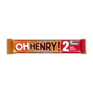 Oh Henry King Size 85gBarra de chocolate, cacahuetes y caramelo.INGREDIENTES: Cacahuetes, azúcar, jarabe de maíz, aceite vegetal, chocolate, leche desnatada, sal, aromas, lecitina de soja.…