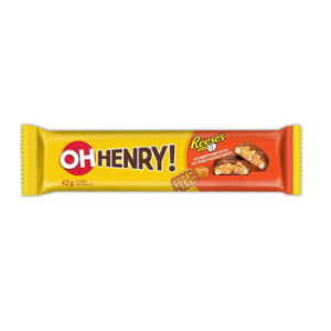 Oh Henry Reese’s Level Up 42gbarrita de chocolate con caramelo, crema de cacahuete y pretzelsINGREDIENTES: Azúcares (azúcar, jarabe de maíz de alta fructosa, dextrosa, sólidos…