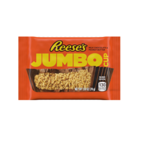 Reese’s Jumbo Cup 79gTaza gigante de chocolate con leche rellena de mantequilla de cacahueteINGREDIENTES: Chocolate con leche (azúcar, manteca de cacao, chocolate, leche desnatada, grasa…