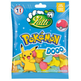 Lutti Pokemon Doo 100g Gominolas Jarabe de glucosa fructosa, azúcar, agua, gelatina, ácido cítrico, concentrado de espirulina, rábano, manzana, cardo, grosella negra, azúcar caramelizada, saborizante…