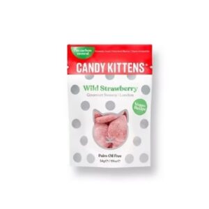 Candy Kittens Wild Strawberry 54g Gominolas ácidas azúcar, jarabe de glucosa, almidón modificado, zumo de fresa y agua de coco concentrados, ácidos (málico, cítrico, láctico)…