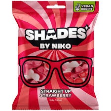 Shades By Niko Strawberry 150gr Gominolas de fresa Jarabe de glucosa, azúcar, almidón modificado, dextrosa, ácidos (ácido cítrico, ácido málico, ácido láctico), proteína de patata,…