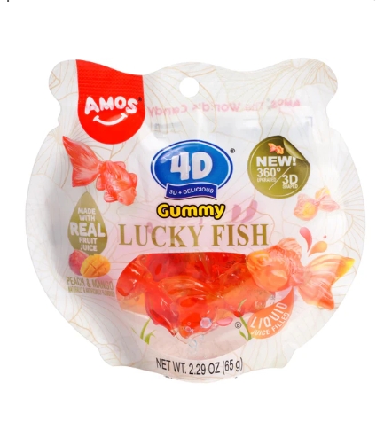 INGREDIENTES: Jarabe de glucosa, azúcar, agua, gelatina, zumo de manzana concentrado, humectante (sorbitol), ácido cítrico, ácido láctico, aromatizantes, pectina, aceite vegetal, colorantes (rojo 40, amarillo 5, azul 1), cera de carnauba. Por 100g: 1380 kJ (330 kcal) Grasas: 0.2 g Saturadas: 0 g Carbohidratos: 76 g Azúcares: 52 g Proteínas: 6 g Sal: 0.06 g