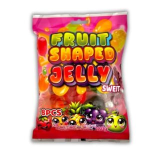 nIngredientes: Jarabe de glucosa, azúcar, agua, zumo de fruta concentrado (maracuyá/fruta de la pasión 5%), gelatina, humectante (sorbitol), acidulantes (ácido cítrico, ácido málico), espesante (pectina), aromas artificiales, agentes de recubrimiento (aceite de coco, cera de carnauba), colorantes (E102, E110, E171). Información nutricional (por 100g): Valor energético: 1380 kJ / 330 kcal; Grasas: 0g (de las cuales saturadas: 0g); Hidratos de carbono: 78g (de los cuales azúcares: 55g); Proteínas: 4,5g; Sal: 0,05g.