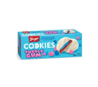 INGREDIENTES: Harina de trigo 43.5%, relleno sabor chicle 25% [azúcar, grasas vegetales (palma, colza), suero de leche en polvo, leche desnatada en polvo, aroma, colorante (antocianinas)], glaseado blanco 25% [azúcar, grasas vegetales (palma, colza), leche entera en polvo, emulgente (lecitinas de soja), aroma], grasas vegetales (coco, colza), azúcar, gasificante (carbonatos de sodio), sal. Por 100g: