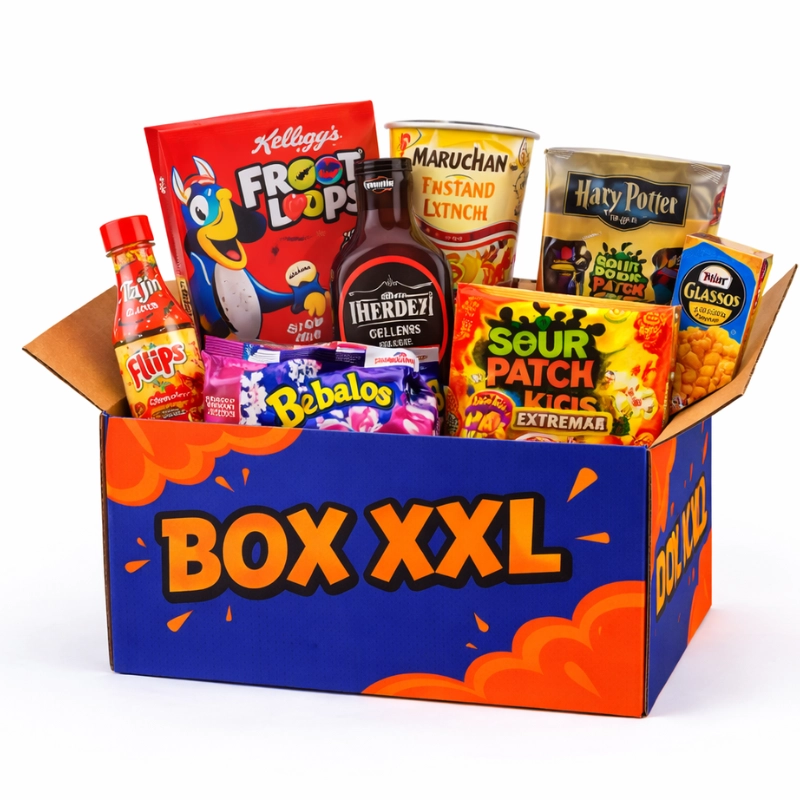¡Una caja llena de sorpresas! Con esta selección de productos deliciosos, podrás disfrutar de sabores únicos y auténticos. Desde golosinas clásicas hasta snacks exclusivos, este Box XXL tiene todo lo que necesitas para consentir tu paladar. Ten en cuenta que la imagen no representa los productos exactos de la caja; los productos reales pueden variar, pero cada caja te dará una experiencia increíble sin dejar de ser accesible.