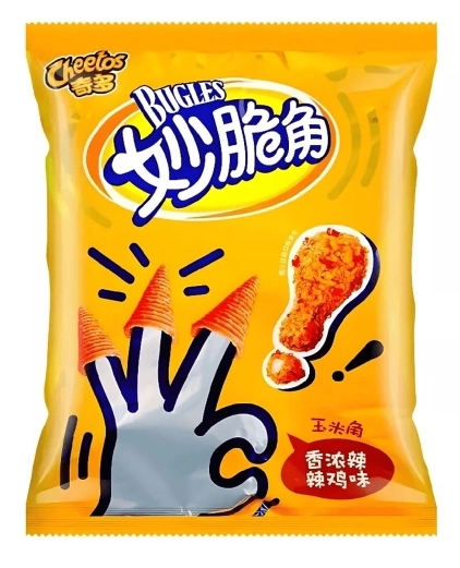 INGREDIENTES E INFO NUTRICIONAL: Harina de maíz, aceite vegetal (palma), condimento de pollo picante (azúcar, sal, potenciador del sabor (E621), cebolla en polvo, ajo en polvo, chile en polvo (0,5%), salsa de soja en polvo, extracto de levadura, aroma de pollo), carbonato cálcico (E170), antioxidante (E319). Contiene soja y gluten. Puede contener trazas de leche, huevo y mariscos. VALOR NUTRICIONAL (por 100g): Valor energético: 2210kJ/528kcal; Grasas: 30g (saturadas: 15g); Hidratos de Carbono: 60g (azúcares: 4,5g); Proteínas: 4,5g; Sal: 1,8g. Conservar en lugar fresco y seco. Producido en China.