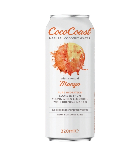 nIngredientes: Agua de coco natural (94,5%), puré de mango (5%), aroma natural de mango, vitamina C (ácido ascórbico). Información nutricional (por 100ml): Valor energético: 95 kJ / 23 kcal; Grasas: 0g (de las cuales saturadas: 0g); Hidratos de carbono: 5,6g (de los cuales azúcares naturales: 4,9g); Proteínas: 0g; Sal: 0,04g; Potasio: 184mg; Vitamina C: 10mg.