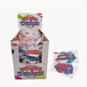 INGREDIENTES: Azúcar, lactosa (leche), jarabe de maltosa, acidulante (ácido málico), aroma artificial, dióxido de carbono, colorantes (E129 Rojo Allura AC, E102 Tartrazina). Por 100g: 1594 kJ (381 kcal) Grasas: 0 g Saturadas: 0 g Carbohidratos: 95 g Azúcares: 86 g Proteínas: 0 g Sal: 0 g