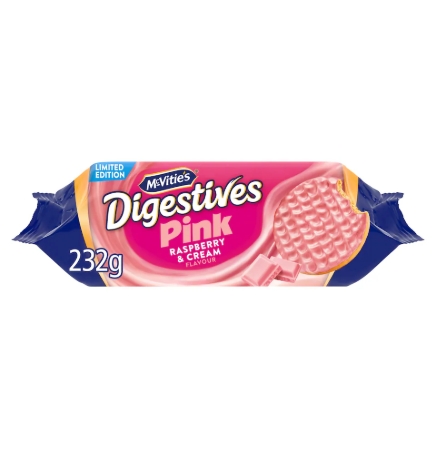 Ingredientes: harina (39%) (harina de trigo, calcio, hierro, niacina, tiamina), recubrimiento sabor frambuesa y crema (28%) [azúcar, grasas vegetales (palma, karité), leche desnatada en polvo, emulgente (lecitina), colorantes (rojo remolacha, extracto de pimentón), correctores de acidez (ácido málico, ácido cítrico), aroma natural, sal], aceite de palma, harina integral de trigo (9%), azúcar, jarabe de glucosa-fructosa, gasificantes (bicarbonato de sodio, ácido málico, bicarbonato de amonio), sal.