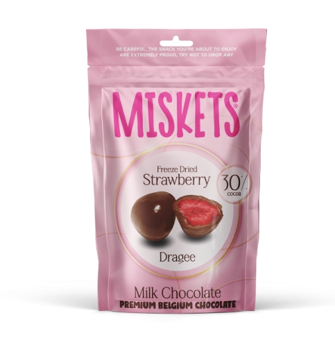 Ingredientes: Chocolate con leche (70%) [Azúcar, manteca de cacao, leche entera en polvo, masa de cacao, suero lácteo en polvo, emulsionante (lecitina de soja E-322), aroma natural de vainilla], fresa liofilizada (28%), agentes de recubrimiento (goma arábiga E-414, goma laca E-904). Cacao mín. 30%. Información Nutricional (por 100g): Energía: 512 kcal / 2142 kJ; Grasas: 29g (saturadas 18g); Carbohidratos: 56g (azúcares 51g); Proteínas: 6,2g; Sal: 0,12g. Contiene leche y soja. Puede contener trazas de cacahuetes, gluten y frutos de cáscara.
